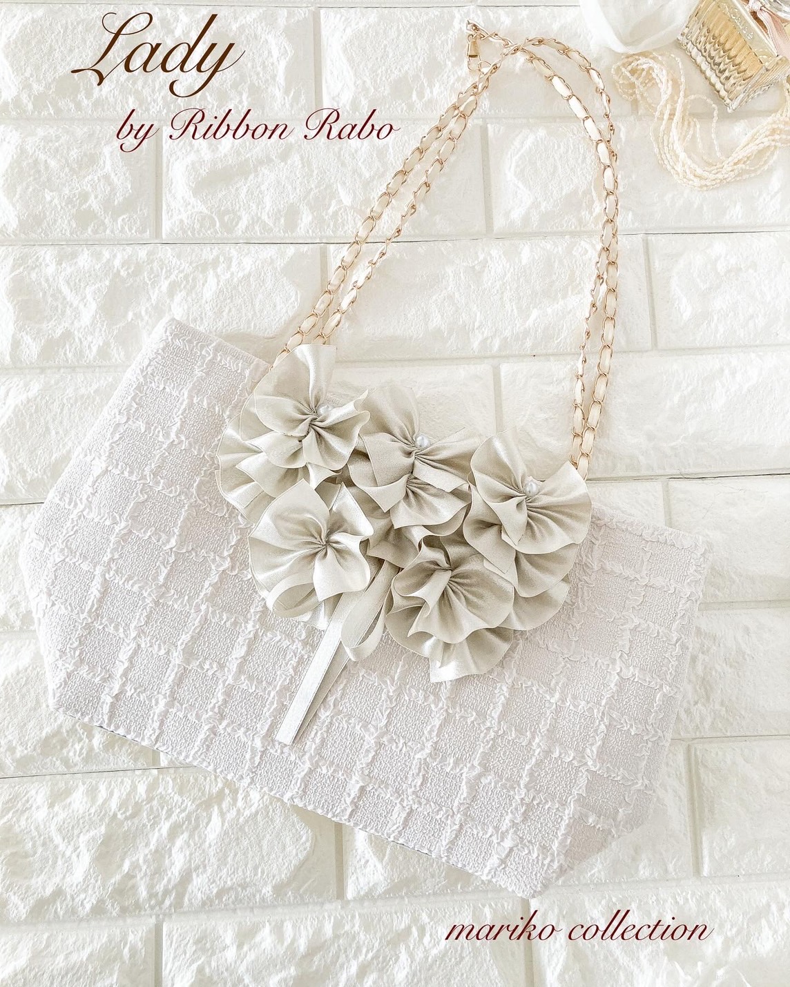 昔はリボンは子供が身につけるイメージでしたが、勉強していくにつれ、ヘアアクセサリーだけでなく、バッグやポーチ、小物など大人可愛い物が沢山あり、大人が好みそうな物を中心に作る様になりました。自分自身もリボンって本当にかわいいと、どんどん思う様になり、もっと多くの方にリボン雑貨の可愛さを知って頂けたらいいなあと思ってます。