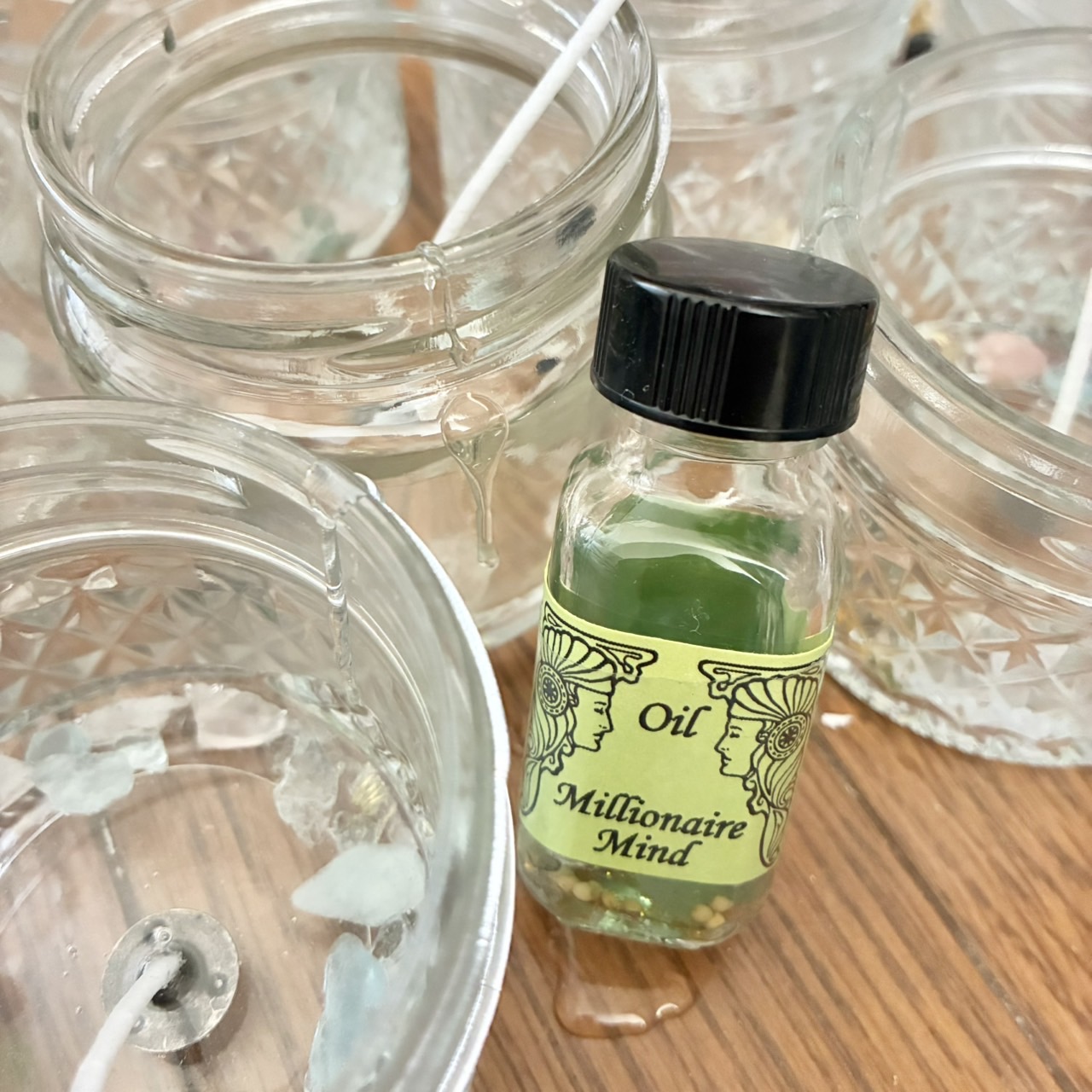 パワーストーンとキャンドル芯の固定するジェルに、メモリーオイルの億万長者マインドを使いました🕯