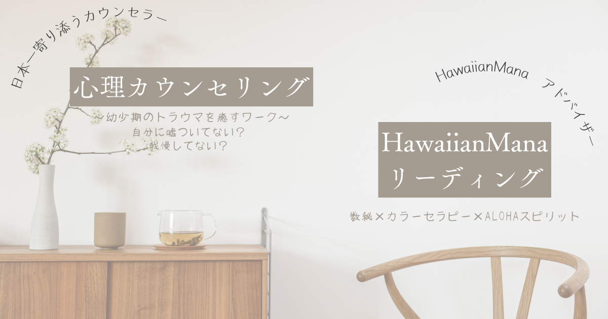【カウンセリング実績・仕事】 ママの子育て相談 生後3か月での離婚から、完全一人子育て歴11年 どん底人生から這い上がり、自分らしく生きる人生を取り戻せた経験から、 日本一、寄り添うカウンセラーとして活躍中。 公立小中学校での勤務経験23年から、 様々な家庭事情に関わって、援助制度や学校諸費の支払い相談を受けてきました。 自分を押し殺し、我慢し続け、がんばっている人をサポートします。 ※モニターセッション募集中(まずは体験してみてください) https://note.com/mizuki202546 ↑noteのブログ更新中 【Hawaiian Manaリーディング】 数秘術とカラーセラピー、ALOHAスピリットを融合したオリジナルメソッドです。 ご自身やご家族の個性や才能を知ることで、未来にワクワクしたり、家族との関係が穏やかになります。 ※モニター価格実施中(先着10名様まで) 通常10,000円でご提供しているものです。 モニター価格は今だけ! |