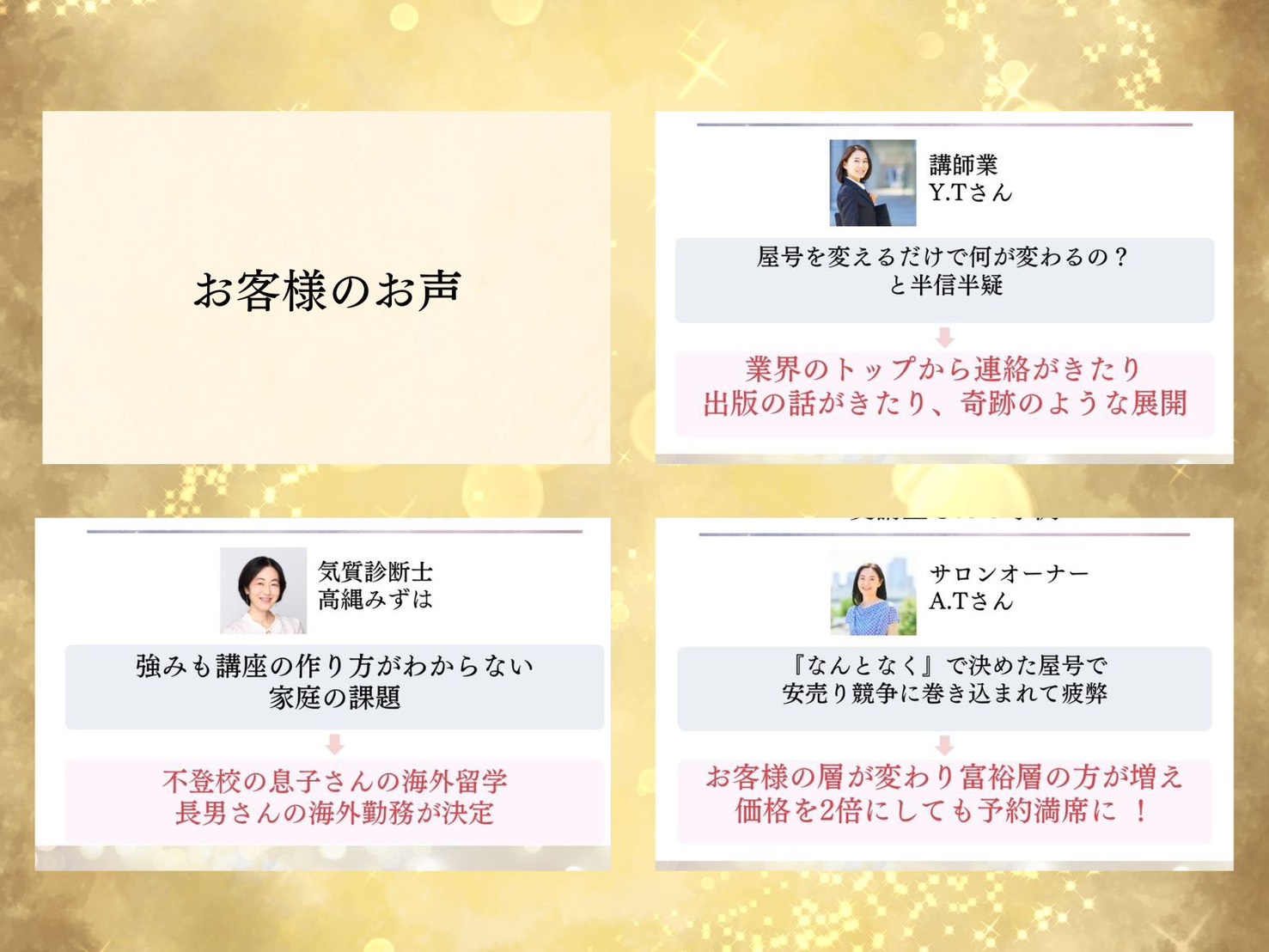 まずは鑑定をしてもらって、方向性を見つけて走り出せば、行きたい未来への道のり、効率アップです!