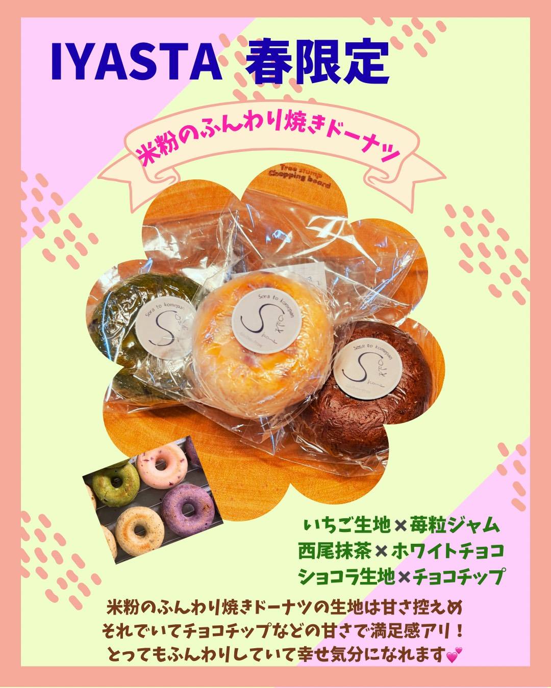 2026/03/18 23:59まで米粉パンと米粉焼きドーナツやクッキーの苺、抹茶、ショコラ味のセットです。