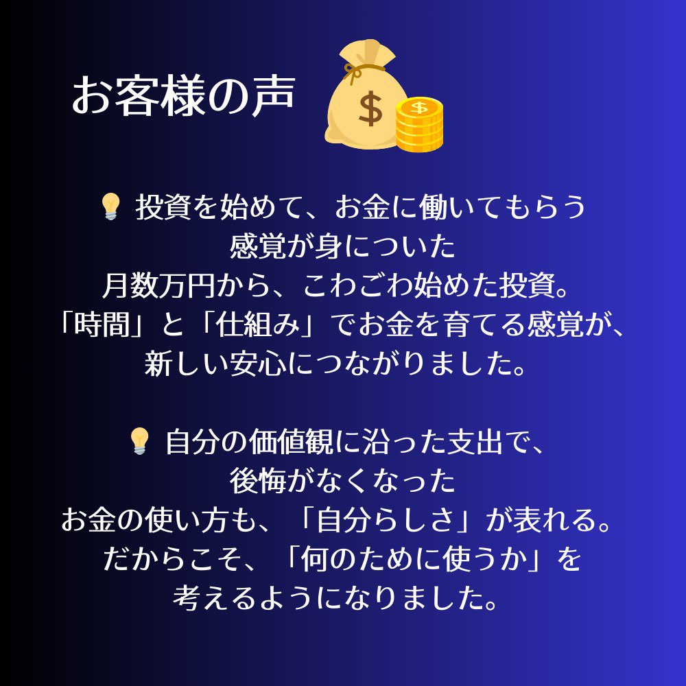 💡 投資を始めて、お金に働いてもらう感覚が身についた