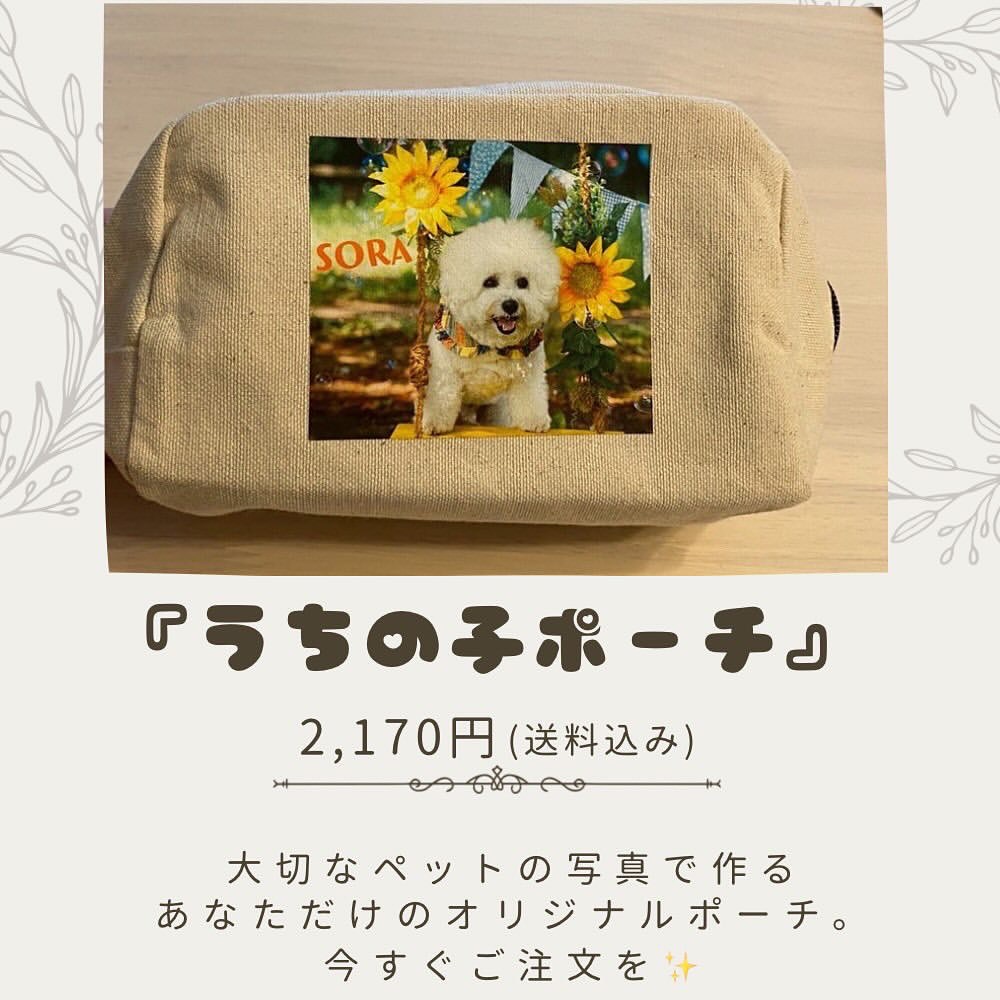 2025/09/26 23:59までお気に入りのお写真を送るだけで出来る、世界に一つだけのうちの子ポーチです。ペット