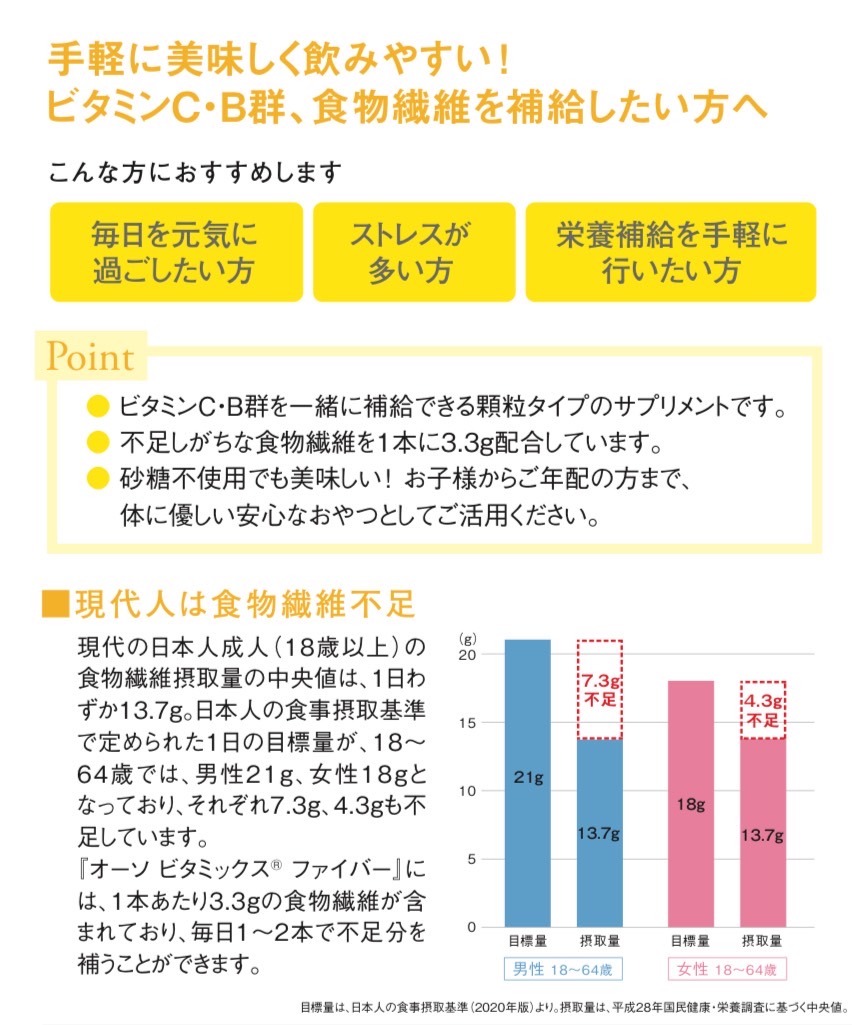 ● 不足しがちな食物繊維を1本に3.3g配合しています。