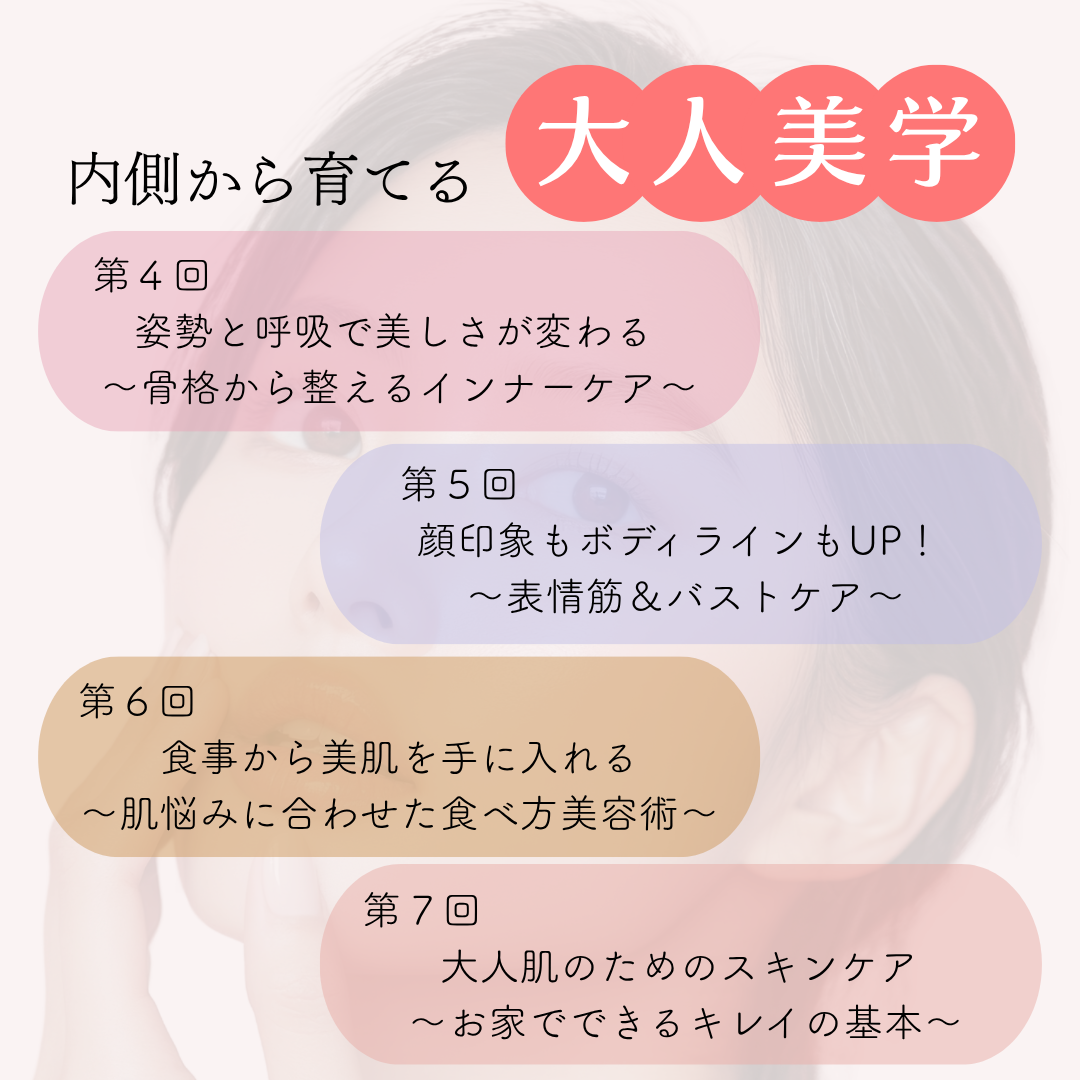 この10講座で、あなたの「体・肌・心・生き方」が内側から整い、年齢に縛られない 大人の美学 を育てていきます。