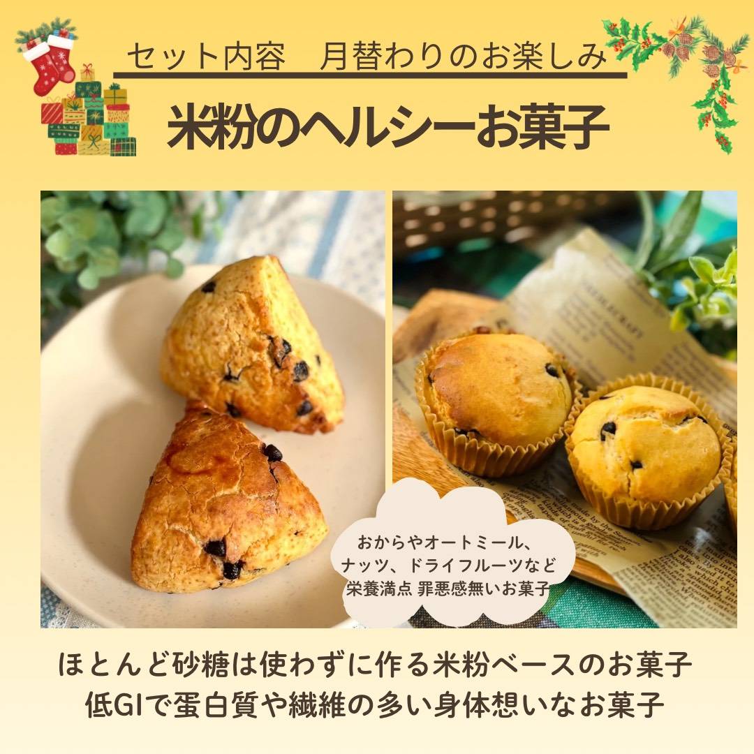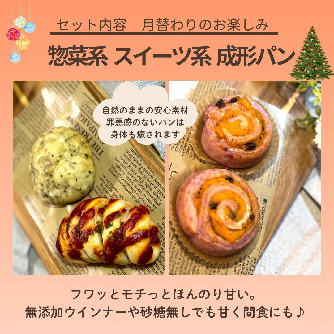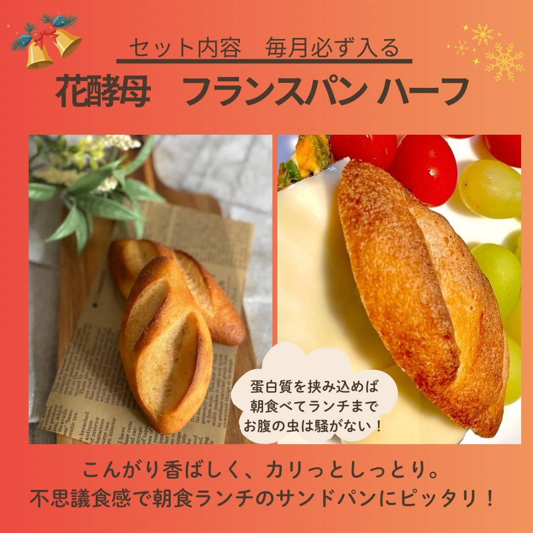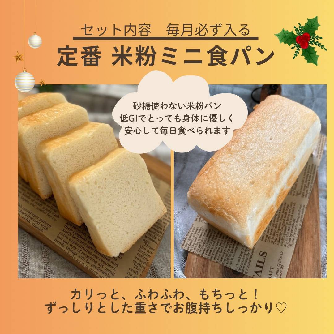 定番の米粉ミニ食パンと私イチオシの花酵母フランスパンハーフ2個、月替わりの成形パン4個、ヘルシーな米粉お菓子2個の季節感感じる美味しいセットです。