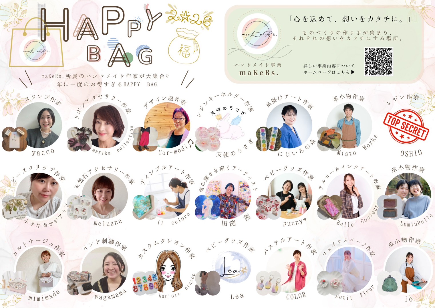2026/12/31 23:59までハンドメイド事業maKeRs.の作家21名の作品を集めた豪華福袋