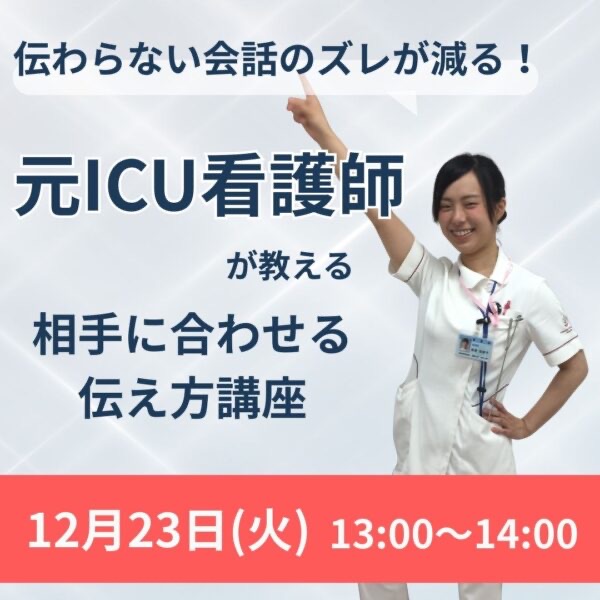 伝わらない会話のズレが減る!元ICU看護師が教える相手に合わせる伝え方講座【12/23(火)13時〜14時】