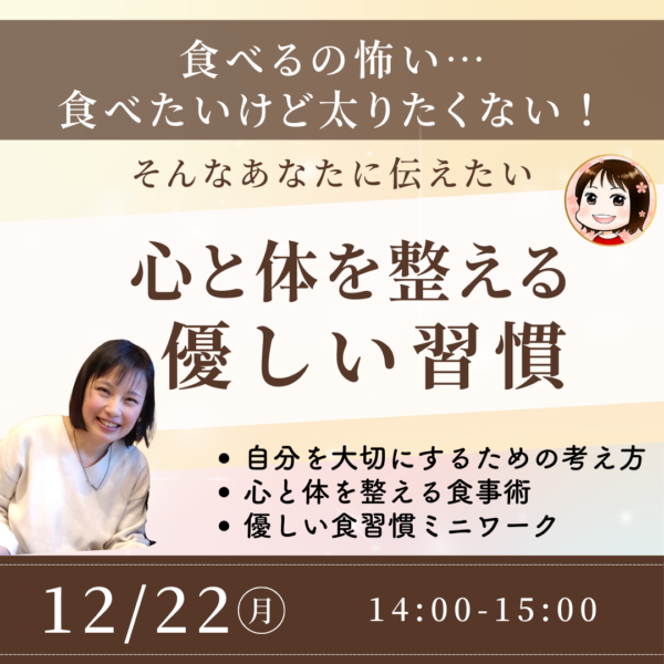 食べたいけど太りたくない!そんなあなたに伝える”心と体を整える優しい習慣”【12/22(月) 14時~15時】