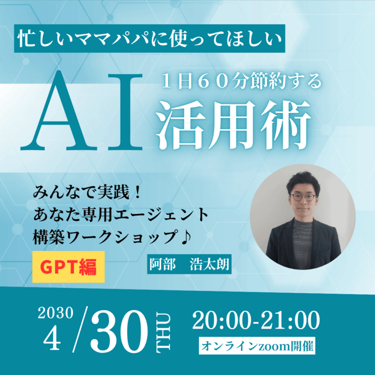 忙しいママパパに使って欲しい 1日60分節約するAI活用術 GPT編【4月30日㈭20:00〜21:00】