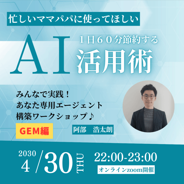 忙しいママパパに使って欲しい 1日60分節約するAI活用術 Gem編【4月30日㈭22:00〜】