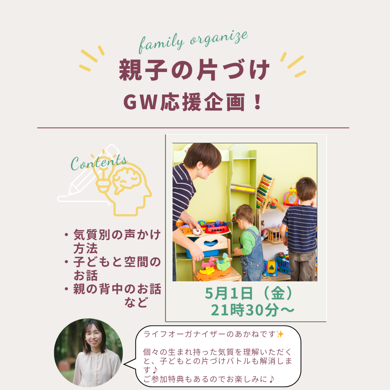気質別!親子のお片づけ【5月5日21:30〜22:30】